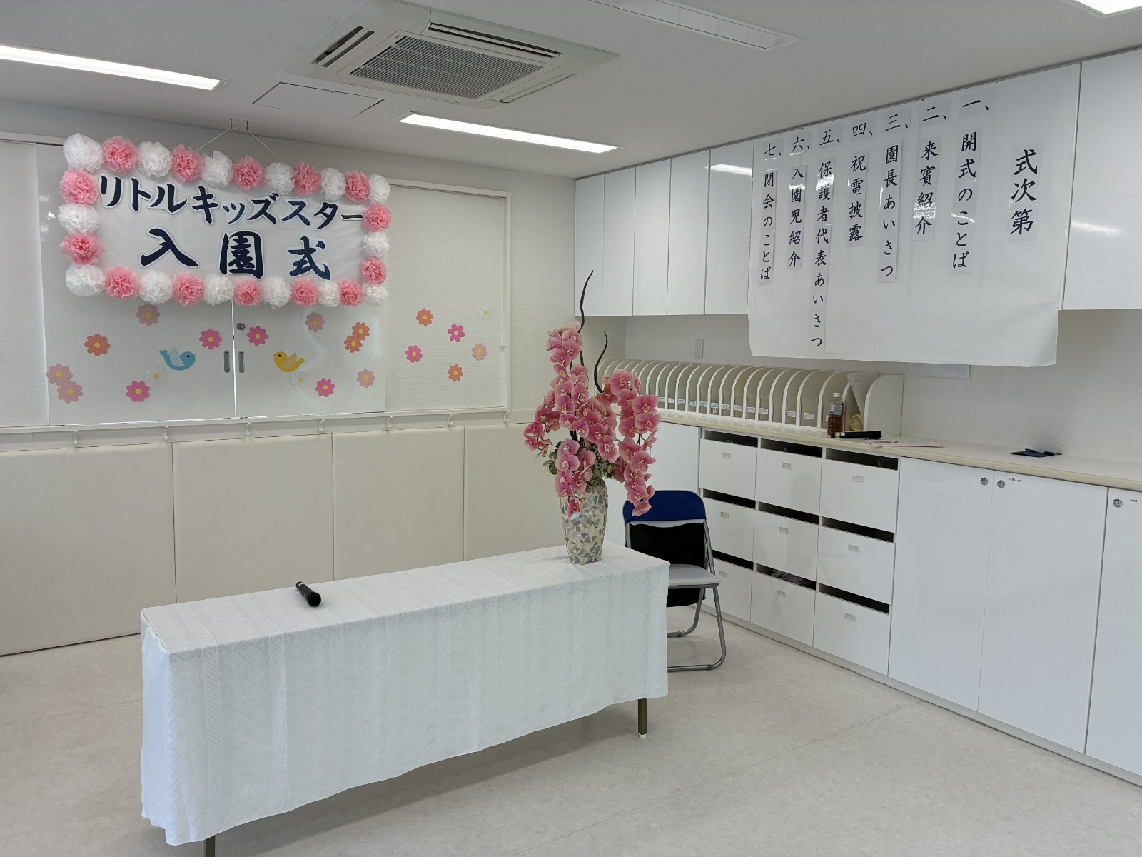 リトルキッズの入園式は、いつも保育で使用している保育室で行われます。